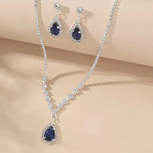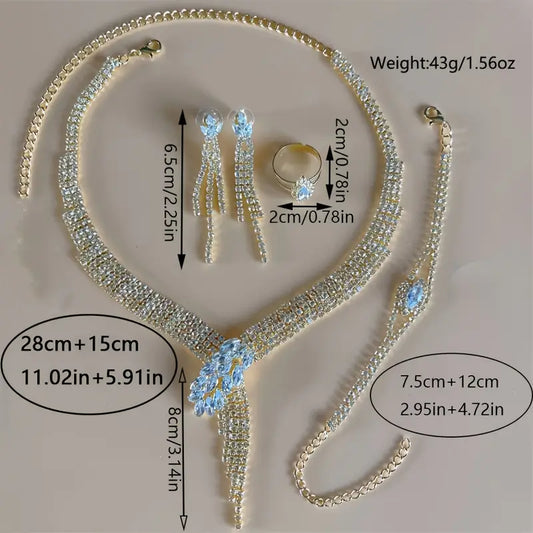 1 Pair Of Earrings + 1 Necklace Chic Jewelry Set Sparkling Flower Design
